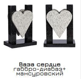 Ваза сердце из габбро-диабаза и мансуровского гранита 33 см